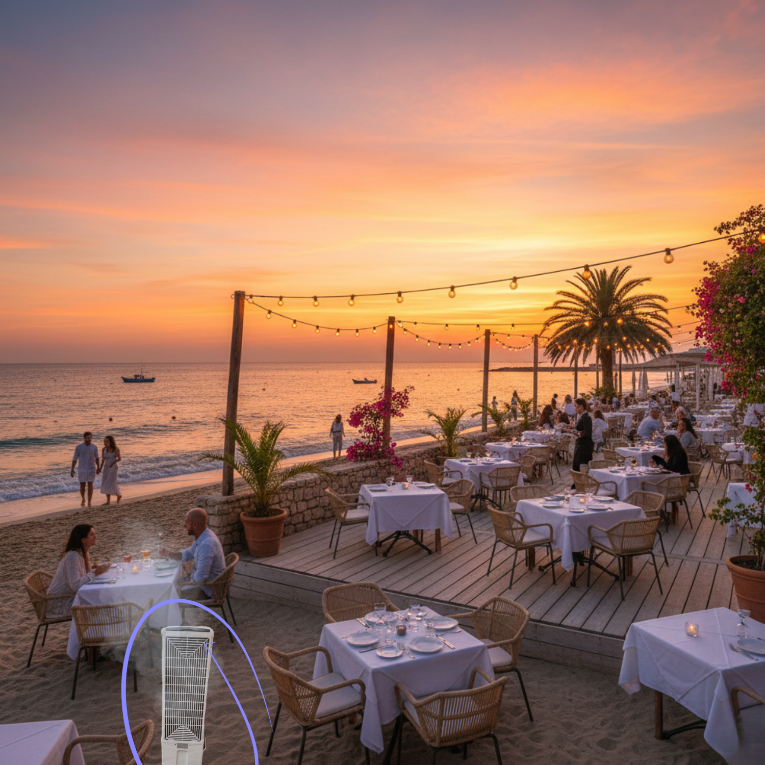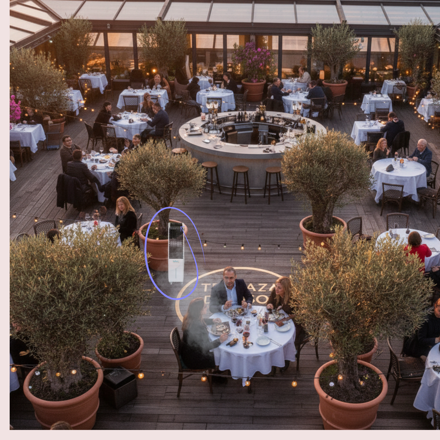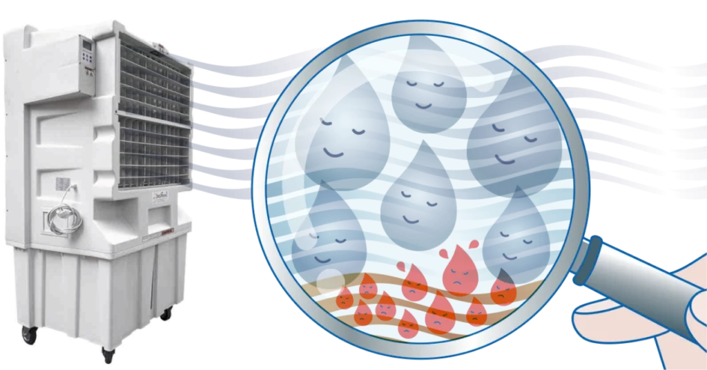 La evolución de los ventiladores ha llevado al uso de agua que crea microgotas(Principio adiabático) 👈🏽, consiguiendo así el máximo confort de la forma mas natural y respetuosa hacia el medio ambiente.