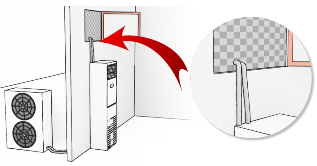 La presencia de una puerta o ventana cerca permite instalar la unidad interior sin practicar ningún agujero en la pared: basta con abrir la puerta/ventana y crear un panel con material aislante rígido especial.