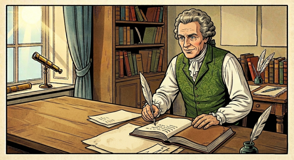 ¡Un momento! Al revisar sus mediciones, Herschel no podía creer lo que veía: el termómetro colocado en la zona oscura, más allá del color rojo, marcaba la temperatura más alta de todas. Donde aparentemente no llegaba la luz, había un calor intenso y misterioso. Con sudor en la frente y el dedo índice en la sien, se dio cuenta de algo revolucionario: ‘¡Entonces… hay una luz invisible que calienta!’ Estaba ante un descubrimiento que cambiaría nuestra comprensión de la energía.