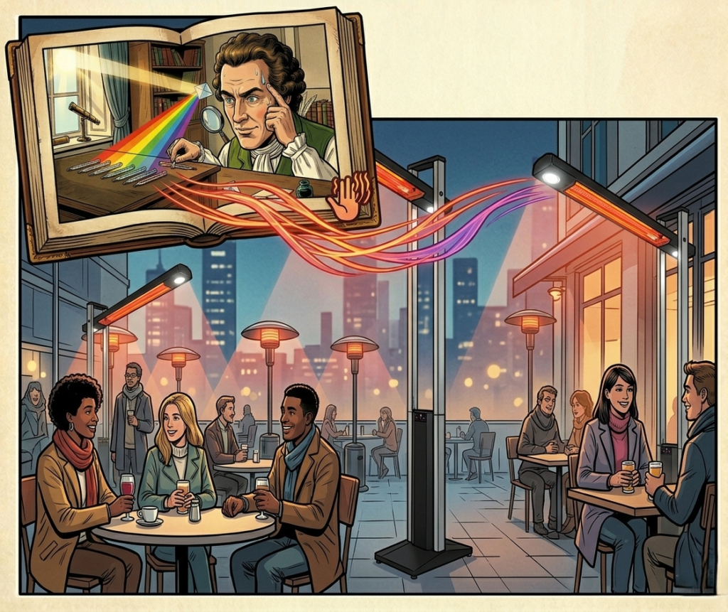 Descubre cómo ese experimento cambió para siempre la forma en que disfrutamos del exterior y cómo hemos aplicado esa misma magia física en nuestra nueva generación de calefactores infrarrojos.