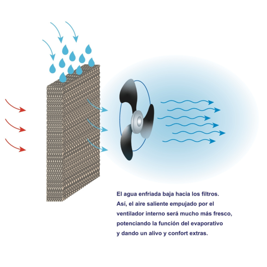 🍃 Paso 3: Para que el agua de los paneles se evapore, necesita energía (Calor) esa energia la toma directamente del aire que va pasando.